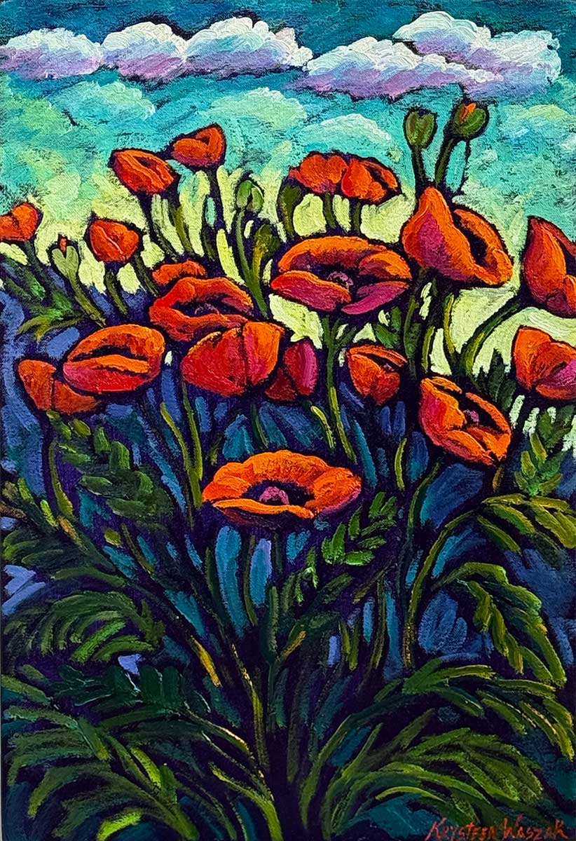 Oil on Canvas – Poppy Bunch 12×18, A great pop of color, a bunch of poppies, what could be better?!