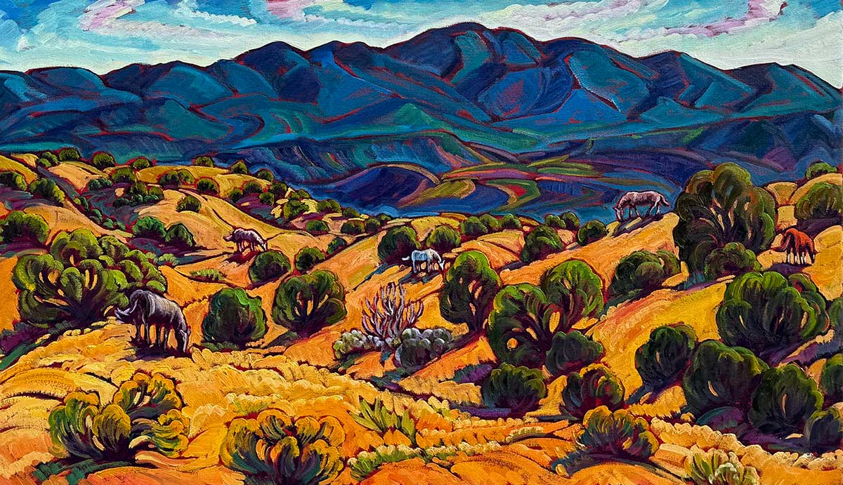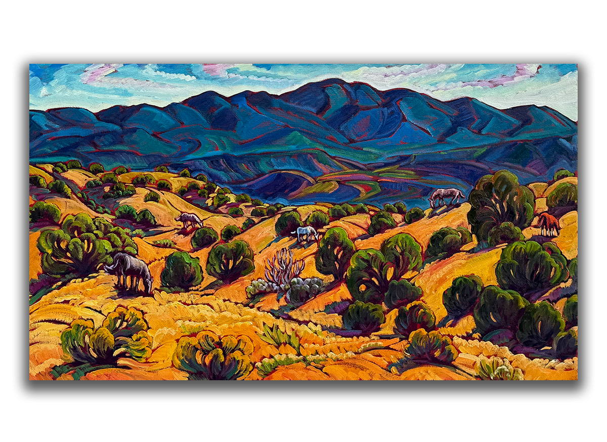 Oil on Canvas – Sandia Foothills With Wild Horses 28×40, Currently Unframed, price includes frame. Shipping, contact Krysteen