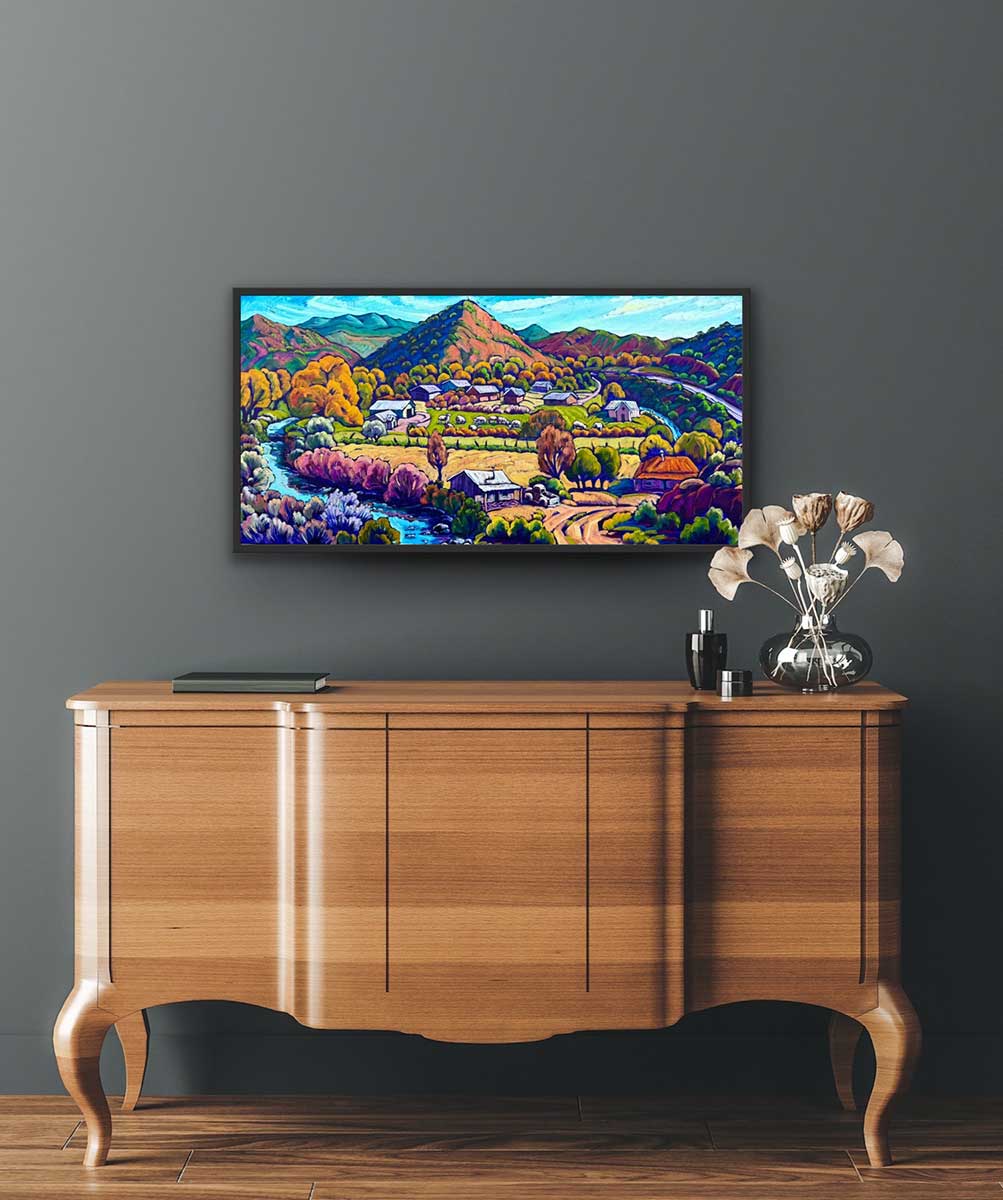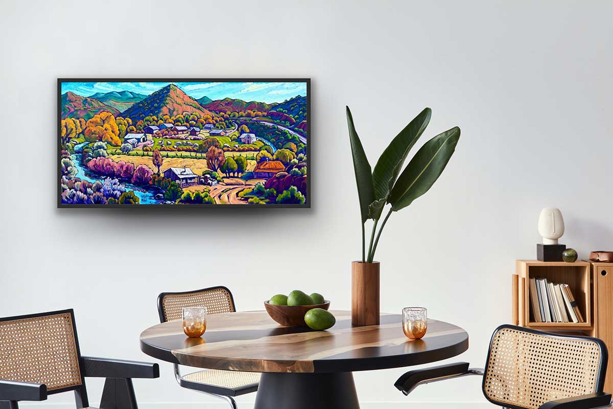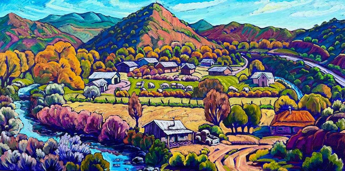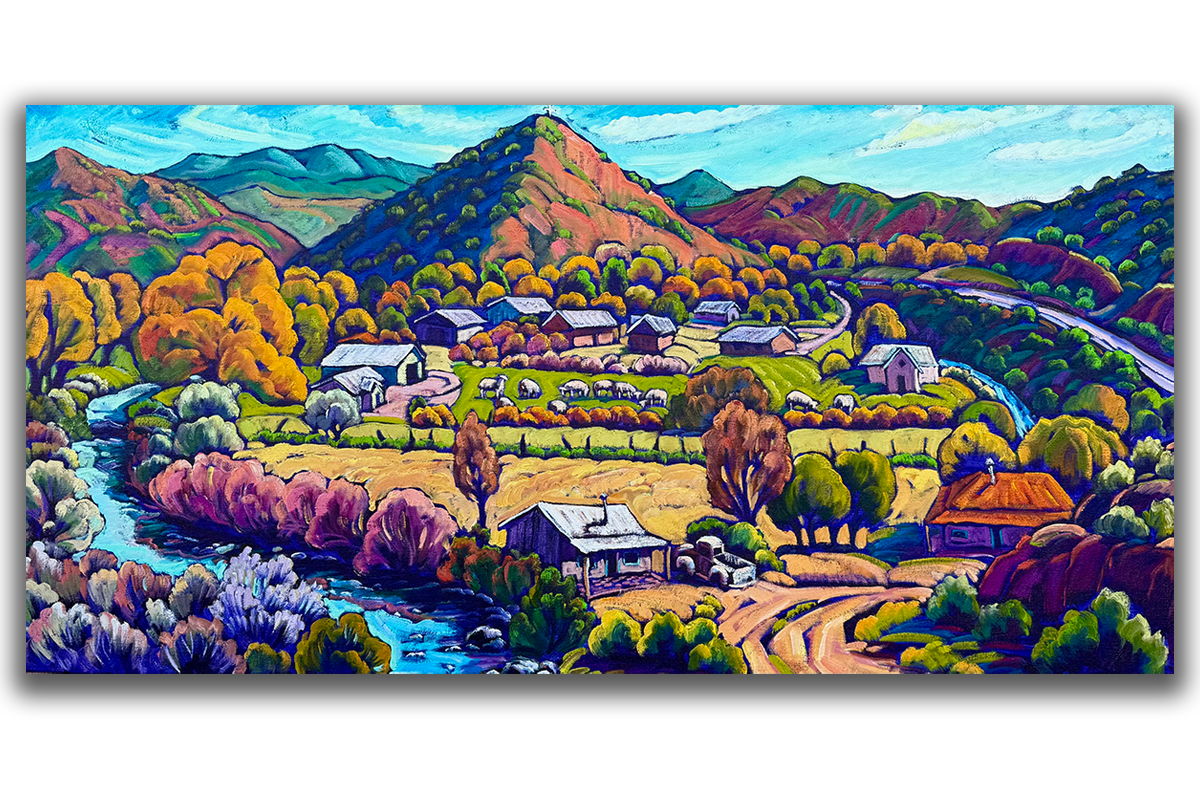 Oil on Canvas – The Embudo Valley 24×48, I love painting this little valley, it holds the seasons in so well and feels timeless. I can’t help myself.