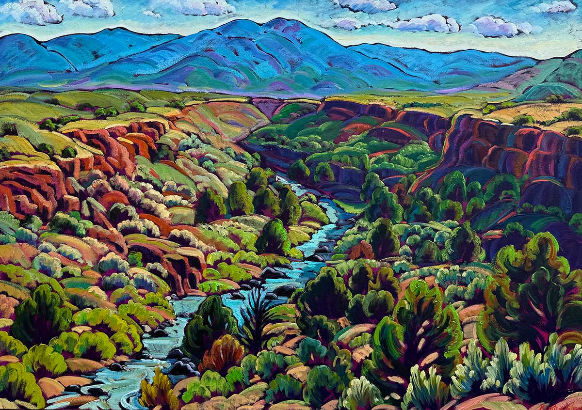 Oil on Canvas – Summer Canyon on the Rio Pueblo 31 x44, it’s no secret that I paint this place often, I love it more and more, I find myself taking a big exhale and then I get to work…